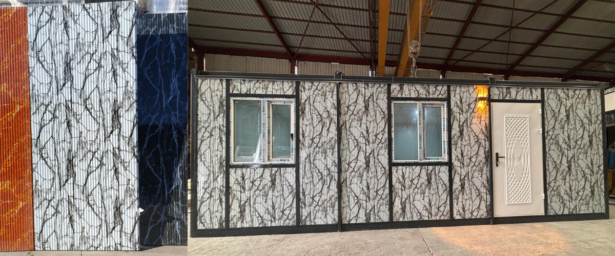 Bu ölçüler, konteyner dış cephe kaplamalarında kolay montaj ve estetik görünüm sağlamak için tasarlanmıştır. Dayanıklı yapısı ve mermer desenli yüzeyiyle farklı boyutlardaki projelerde güvenle kullanılabilir.